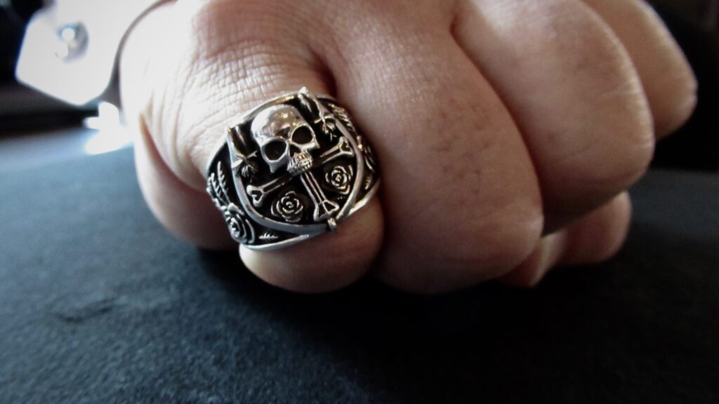 中央の大きなスカルは平和への祈りのシンボルとなっています。スカルヘッドのデザインは非常にインパクトがありますが、混沌とした今の世の中で生活する現代人へ衝撃と勇気を与えてくれます。このリングはこれから平和な世の中を創り上げていく上での大きな支えとなるでしょう。